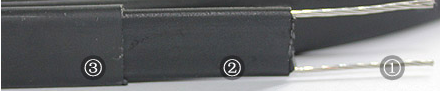 1、線芯;?? 2、導電塑料層:阻燃PTC;?? 3、絕緣層:阻燃聚烯烴