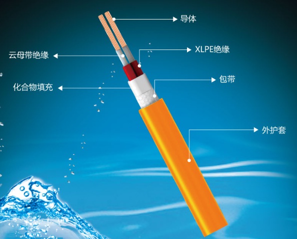 包含采用三根芯線絞合而成的絞合體和繞包在所述絞合體上的阻燃無(wú)鹵玻纖帶層以及擠包在所述阻燃無(wú)鹵玻纖帶層外的低煙無(wú)鹵阻燃護(hù)套,在所述絞合體與阻燃無(wú)鹵玻纖帶層之間填充有無(wú)機(jī)礦物材料;所述芯線包括銅芯導(dǎo)體和繞包在銅芯導(dǎo)體上的雙層云母帶層以及擠包在雙層云母帶層上的交聯(lián)聚乙烯J緣層。